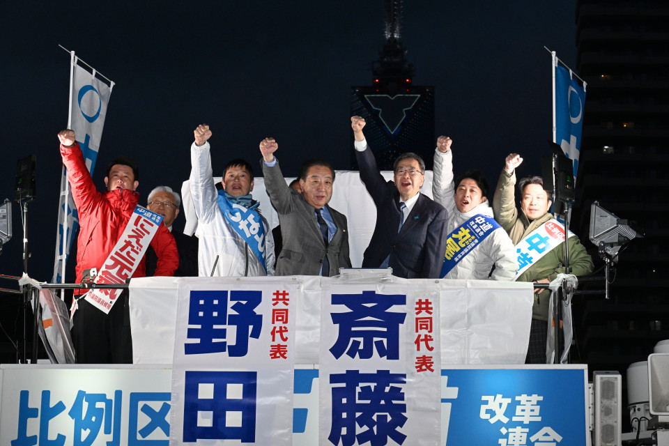 野田共同代表は「最近は斉藤共同代表を『てっちゃん』と呼ばせてもらっている」と、冒頭で両共同代表の親密度の一端を披露。その上で、この時期に選挙を行う高市政権を「普通、政府は予算の年度内成立図るために全力を尽くす。それやらないこと自体が意味分からない。物価高対策が皆さんの手元に届くようにするために全力を尽くすのが政府の役割ではないか。暮らしは後回しということだ」と厳しく批判。暮らしを最優先する生活者ファーストのわれわれが勝たなければいけないと述べ、さらなる支援を求めました。