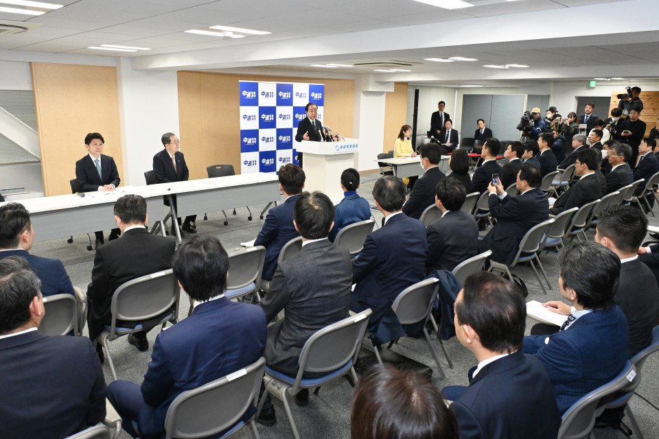 中道改革連合は2月11日、党本部において議員総会を開き、野田、斉藤両共同代表辞任に伴う新代表選出について、今回の代表選挙に限り適用される臨時規程の内容と、代表選挙を2月13日に実施することを承認しました。