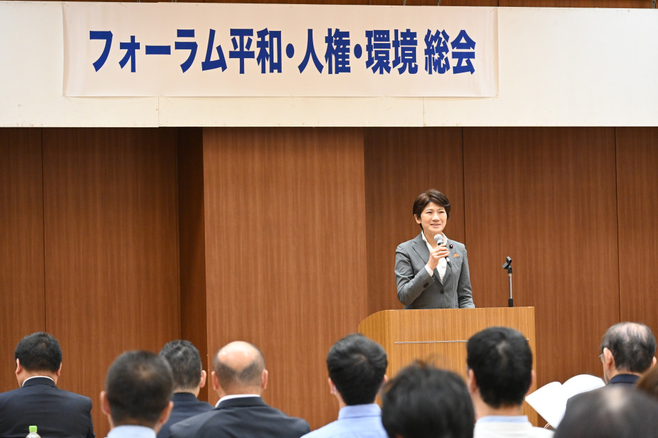 西村副代表、平和フォーラム総会で連帯の挨拶「一人ひとりの人権守る政治を」