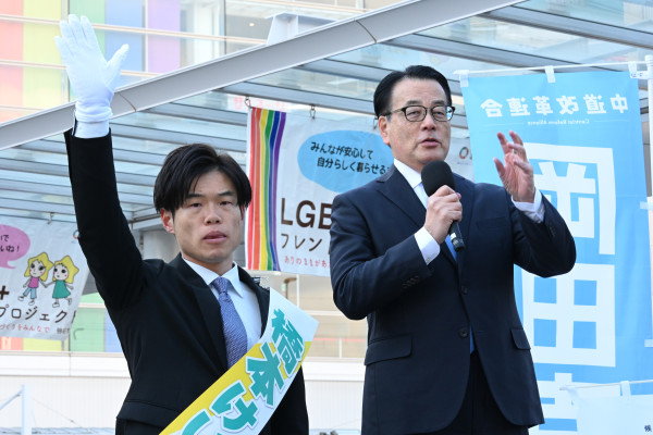 【東京】「弱者生まない社会をつくる」/岡本共同政調会⻑が海江田万里候補 (東京1区)と共に訴え