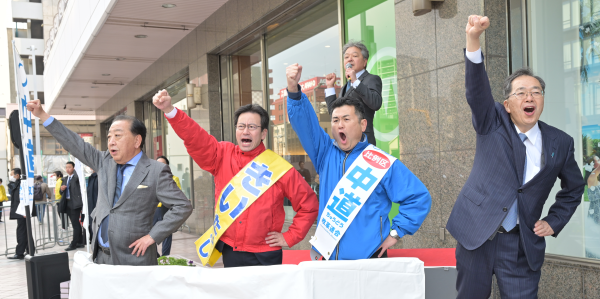 「極端な政治を排し、まともな中道政治を」安住共同幹事長が吉田はるみ候補と訴え